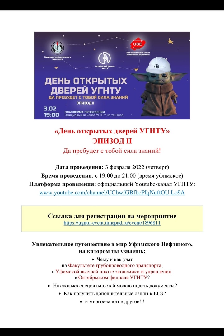 Платформа проведения: официальный Youtube-канал УГНТУ: